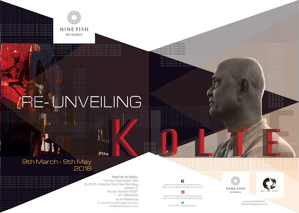 "Re-Unveiling Kolte" chronicles the last decades of Kolte's deep evolution and that of art. The show starts on the 9th of March in an equally and historically layered space, the Nine Fish gallery. Over the period of the show are related events, like talks, discussions, etc. relating to Dr Kolte's art and evolution and the history of abstraction in India.
